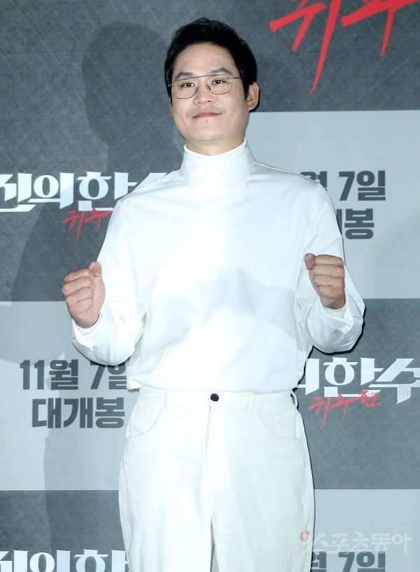 배우 김성균이 29일 서울 용산구 CGV 용산아이파크몰에서 열린 영화 ‘신의 한 수 : 귀수편’ 언론시사회에서 포즈를 취하고 있다.