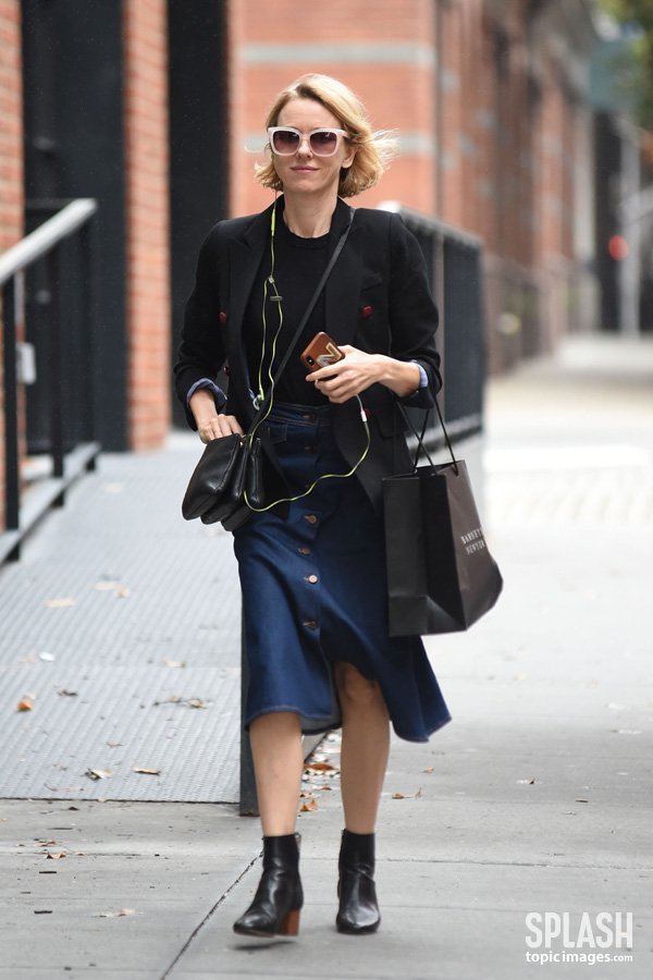 30일(현지시간) 미국 뉴욕에 한 거리에서 포착된 나오미 왓츠는 이날 청치마에 검은색 의상을 입어 50대의 나이가 믿기지 않는 동안 미모를 뽐냈다. 또한 그녀는 길을 걷는데 런웨이로 만드는 비율로 사람들의 시선을 받았다.