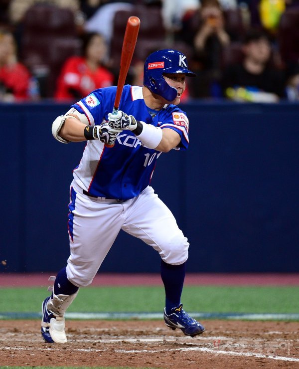 2일 서울 구로구 고척스카이돔에서 한국과 푸에르토리코의 야구대표팀 평가전 경기가 열렸다. 8회초 1사에서 한국 박세혁이 3루타를 날리고 있다. 고척 | 김민성 기자 marineboy@donga.com
