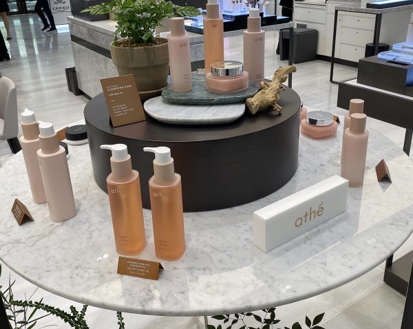 프리미엄 비건 뷰티를 지향하는 LF의 여성 화장품 브랜드 아떼가 4일 현대백화점 판교점 1층에 1호점(사진)을 오픈했다. 30㎡ 규모로 깔끔하고 차분한 회색톤으로 꾸며 정직하고 믿을 수 있는 식물성 화장품이라는 브랜드 철학을 표현했다. 브랜드 전 제품 라인을 선보이고 스킨케어와 메이크업 구현 서비스 등 체험 공간도 마련했다. 첫 단독 매장 오픈을 기념해 30일까지 제품 구매 전 고객에게 ‘클렌징 디럭스’ 2종 키트를 증정한다.
