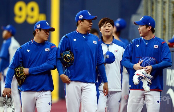 프리미어12 서울예선라운드 첫 경기를 앞두고 5일 서울 구로구 고척스카이돔에서 한국야구대표팀이 훈련을 가졌다.
