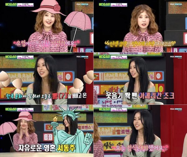 어머니와 함께 ‘비디오스타’에 출연한 서동주는 “오늘 한국 문화에 맞춰서 뽕을 빼고 왔다. 오늘은 노뽕”이라며 “아메리카에서 온 언니 서동주”라고 인사했다. 미국에서 변호사로 활동 중인 그는 “미국 스케줄을 조정했다. 딱 3일 시간을 내서 한국에 왔다”고 밝혔다.