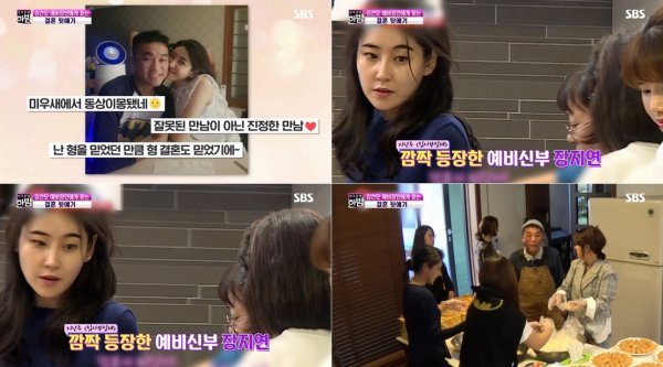 장지연 씨는 결혼 발표 전 녹화를 진행한 SBS ‘집사부일체’에 포착되기도 했다. 연예인 못지 않은 미모의 그는 가족들과 함께 음식을 준비하다 김건모를 사랑스러운 눈빛으로 바라보며 애정을 드러냈다. 김건모 또한 예비신부가 입에 먹여주는 음식을 맛보며 행복한 표정을 지었다.