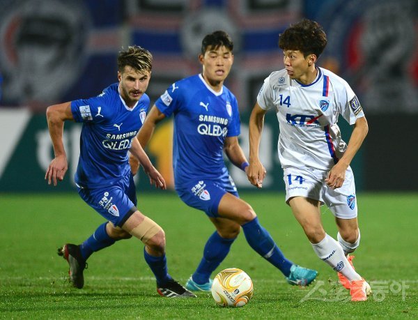 6일 대전한밭종합운동장에서 열린 ‘2019 KEB하나은행 FA컵’ 결승 1차전 수원삼성과 대전코레일 경기에서 대전코레일 이근원이 수원삼성의 수비를 뚫고 공격하고 있다. 대전 | 김종원 기자 won@donga.com
