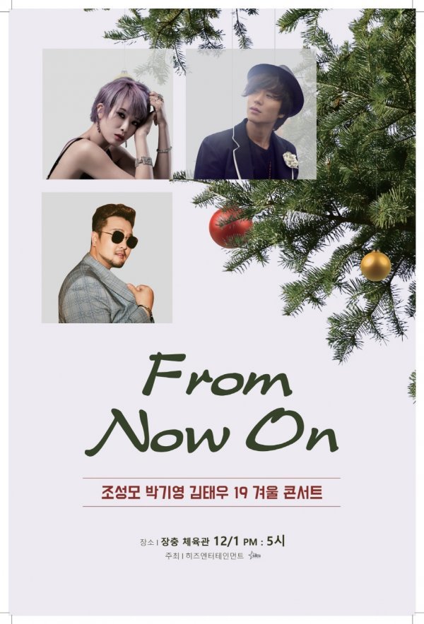 ‘2019 3인 3색 From Now On’(조성모 박기영 김태우)콘서트가 오는 12월 1일(일) 오후 5시 서울 장충체육관에서 열린다.