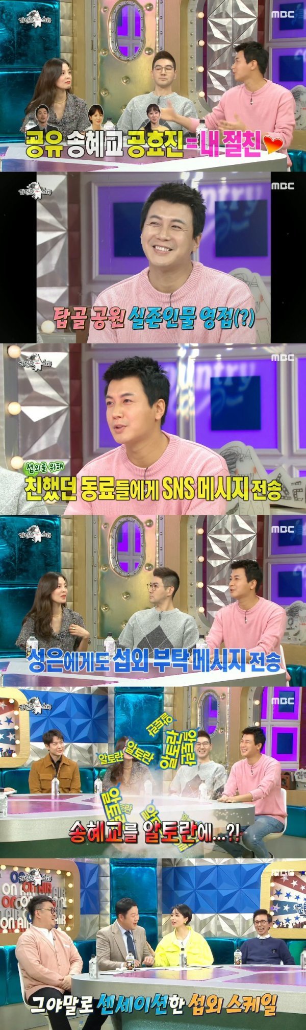 이에 김구라가 “또 누구한테 연락을 했냐”고 묻자 이에 김승현은 “송혜교 씨한테도 보냈다”고 말했다. 그러자 김구라는 “송혜교가 '알토란'에? 이 친구가 정말 대단하다. 아내를 위해 '알토란'에 섭외하다니"라고 덧붙였다.