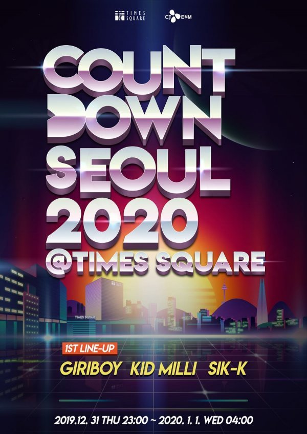 이번 연말에 개최될 ‘카운트다운서울2020 @타임스퀘어’는 현 힙합씬에서 가장 핫하고 트렌디한 래퍼 기리보이, 키드밀리, 식케이가 1차 라인업으로 이름을 올리며 팬들의 뜨거운 관심이 쏟아지고 있다.