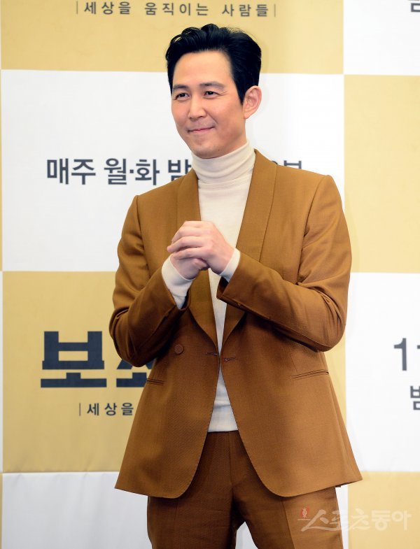 7일 서울 상암동 스탠포드호텔에서 열린 jtbc 월화드라마 ‘보좌관2’ 제작발표회에 참석한 이정재가 카메라를 향해 포즈를 취하고 있다.