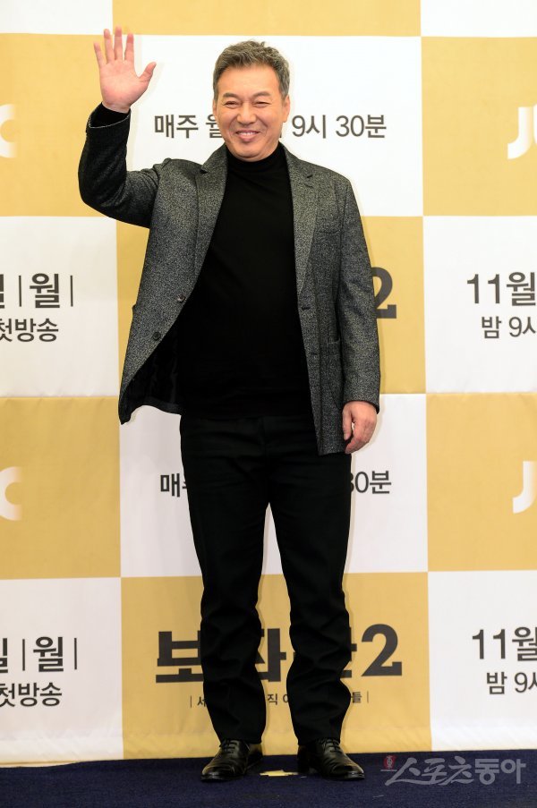 7일 서울 상암동 스탠포드호텔에서 열린 jtbc 월화드라마 ‘보좌관2’ 제작발표회에 참석한 김갑수가 카메라를 향해 포즈를 취하고 있다.