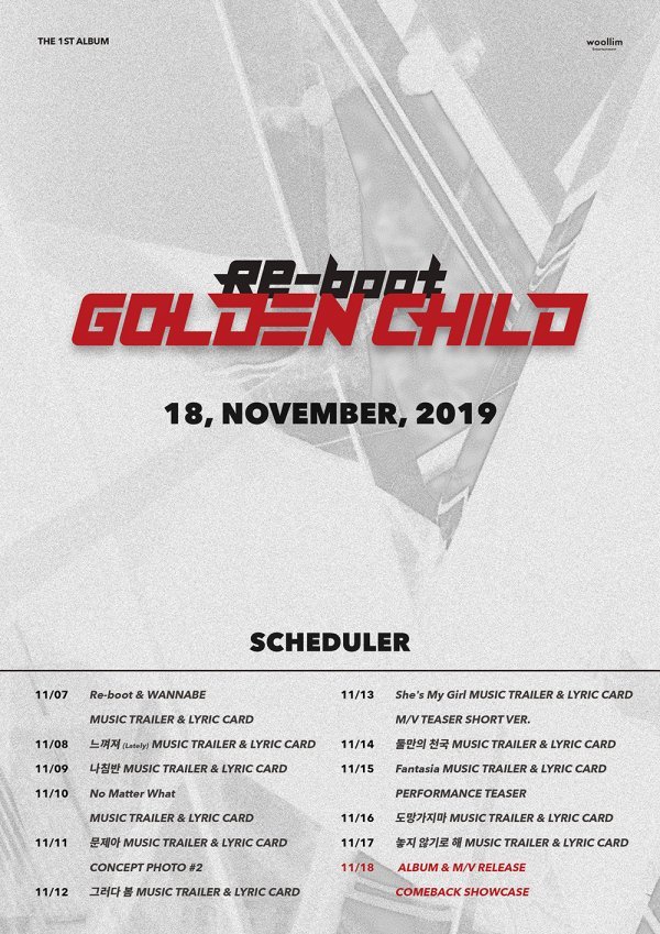 보이그룹 골든차일드(Golden Child)가 첫 정규앨범 ‘리부트’(Re-boot)의 컴백 스케줄러를 공개했다.