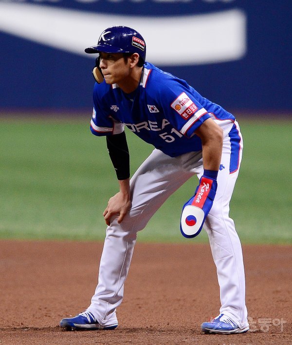 7일 서울 구로구 고척스카이돔에서 ‘2019 세계야구소프트볼연맹(WBSC) 프리미어12’ 서울예선라운드 대한민국과 캐나다의 경기가 열렸다. 대한민국 이정후가 1회말 출루한 후 도루 준비를 하고 있다. 손에 착용한 보호대의 태극마크가 눈길을 끌고 있다. 고척 | 김진환 기자 kwangshin00@donga.com
