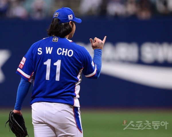 7일 서울 구로구 고척스카이돔에서 ‘2019 세계야구소프트볼연맹(WBSC) 프리미어12’ 서울예선라운드 대한민국과 캐나다의 경기가 열렸다. 대한민국 조상우가 팀의 네 번째 투수로 등판해 야수들과 사인을 교환하고 있다. 조상우는 최근 불거진 밴드 모자에서 벨크로 모자로 교체, 이날 투구에서 모자가 떨어지지 않았다. 고척 | 김진환 기자 kwangshin00@donga.com