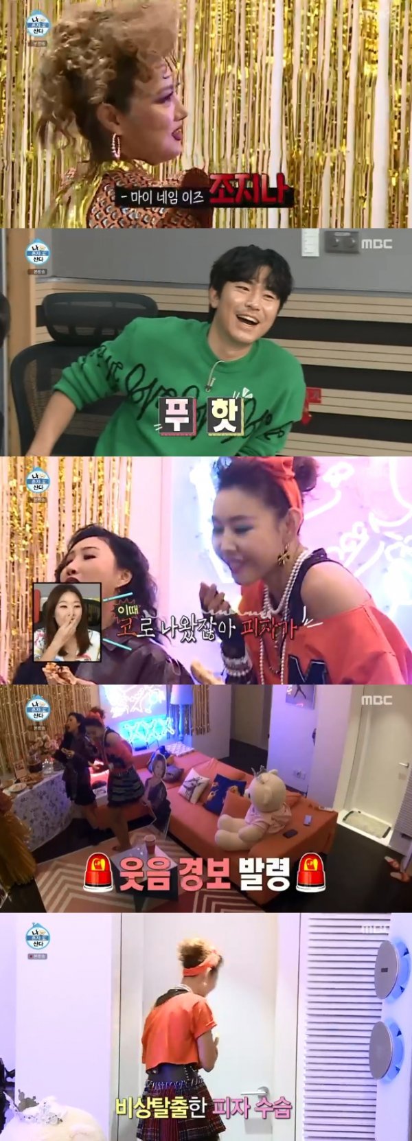 이날 한혜진은 박나래가 준비한 파티 음식을 보고 “미국 파티 같다”고 했다. 그러면서 박나래 이름을 물었다. 그러자 박나래는 “조지나”라고 했다. 그러자 한혜진은 먹던 피자를 뿜으며 박장대소했다.