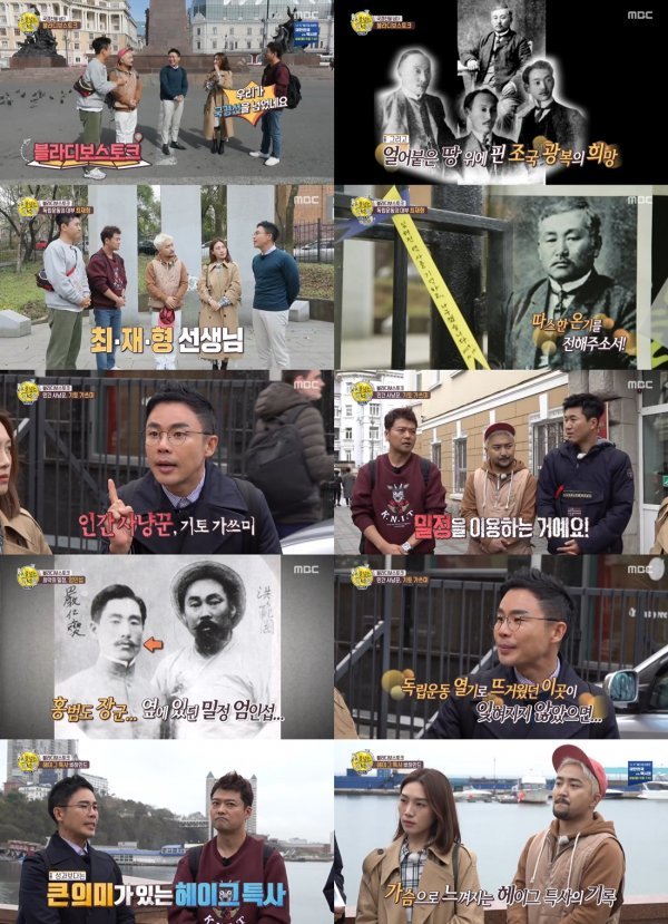 10일 방송된 MBC ‘선을 넘는 녀석들(이하 ‘선녀들’)-리턴즈’ 13회에서는 국경선을 넘어 러시아 블라디보스토크를 찾은 설민석-전현무-김종민-유병재, 특별게스트 최희서의 모습이 그려졌다. 교과서에선 자세히 다뤄지지 않은 블라디보스토크의 독립운동 이야기는 시청자들의 가슴을 울컥하게 만들었다.