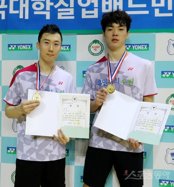 일반남자복식 수원시청 유연성과 김영혁(오른쪽)이 우승을 차지한 후 기념촬영을 하고 있다.
