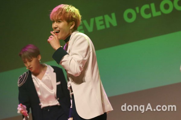 그룹 세븐어클락이 12일 오후 서울 마포구 에스플렉스센터에서 열린 세 번째 미니앨범 \'백야(White Night)\' 발매 기념 미디어 쇼케이스에서 새로운 무대를 선보이고 있다.