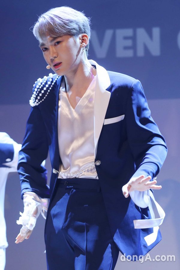 그룹 세븐어클락의 루이가 12일 오후 서울 마포구 에스플렉스센터에서 열린 세 번째 미니앨범 \'백야(White Night)\' 발매 기념 미디어 쇼케이스에서 새로운 무대를 선보이고 있다.
