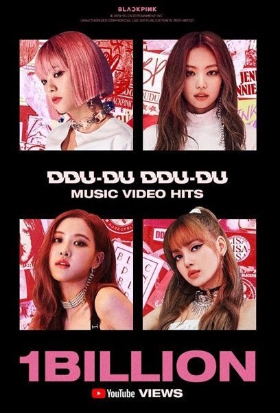 걸그룹 블랙핑크가 한국 걸그룹 최초로 동영상 플랫폼 유튜브에서 뮤직비디오 조회수 10억 건을 넘겼다. 이들은 11일 오후 7시39분 기준으로 히트곡 ‘뚜두뚜두’의 뮤직비디오로 유튜브 조회수 10억 건을 돌파했다. 블랙핑크가 지난해 6월 발표한 ‘뚜두뚜두’의 세계적인 인기를 입증했다. 이들은 올해 8월 한국 걸그룹 최초로 미국 레코드산업협회(RIAA) 골드(50만 장 이상 판매) 인증을 받았다.