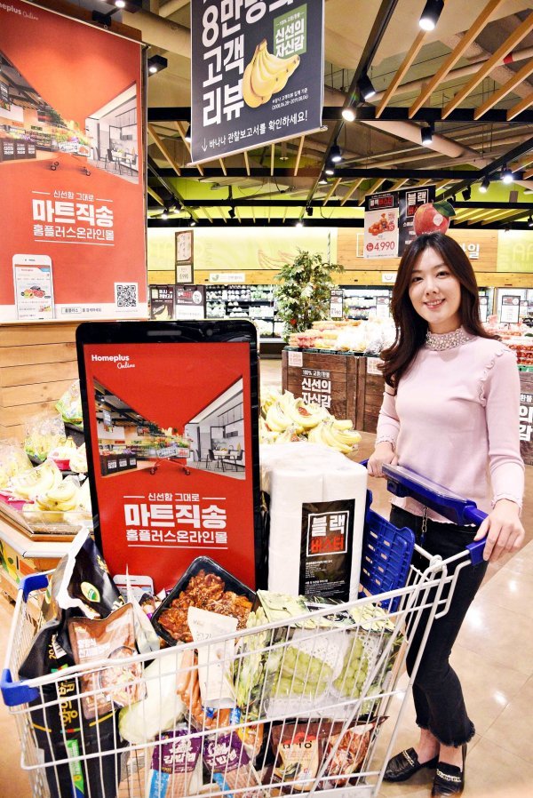 홈플러스가 11일부터 마트직송 캠페인을 전개한다. 고객의 가장 가까운 마트에서 빠르고 신선하게 배송한다는 의미를 담았다. 오프라인 매장을 온라인몰 쇼룸으로 탈바꿈하는 역발상 전략으로 홍보에 나섰다. 캠페인 전개와 함께 30일까지 마트직송 할인전도 진행한다. 사진제공 | 홈플러스