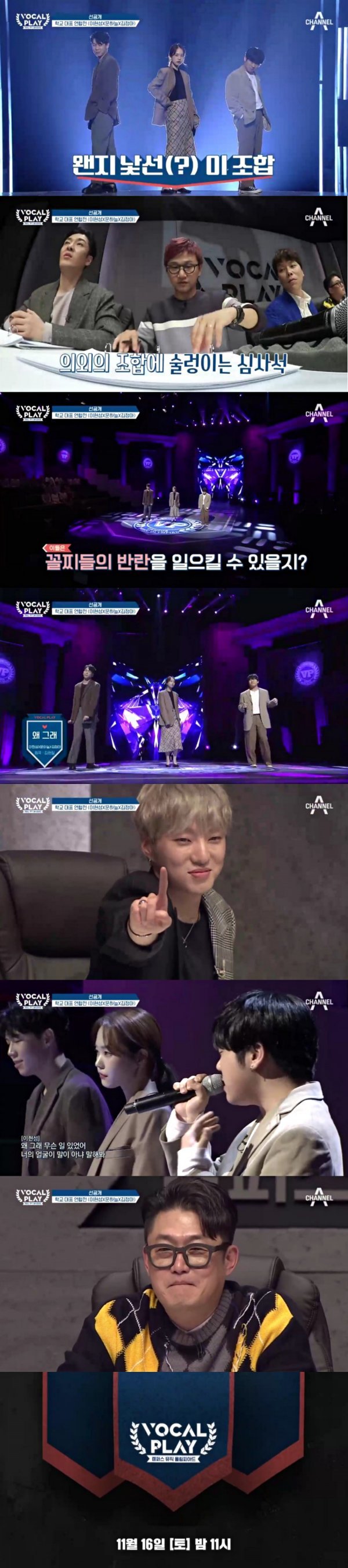 14일 채널A의 대학생 뮤지션 발굴 프로젝트 ‘보컬플레이 : 캠퍼스 뮤직 올림피아드(이하 보컬플레이2)’ 측은 문하늘(서울대)-김정아(성신여대)-이현성(호원대) 연합팀의 ‘왜 그래’(원곡: 김현철) 무대를 선공개했다. 이들은 상위권부터 차례로 연합팀 멤버 지명권이 주어졌던 학교 대표 연합전 팀 선정에서 끝까지 선택받지 못하고 남은 3인이 뭉친 팀이었다.