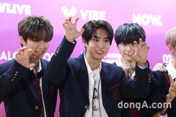 그룹 스트레이키즈가 16일 오후 서울 구로구 고척스카이돔에서 열린 제1회 브이라이브 어워즈 V하트비트 골드카펫행사에 참석하고 있다.