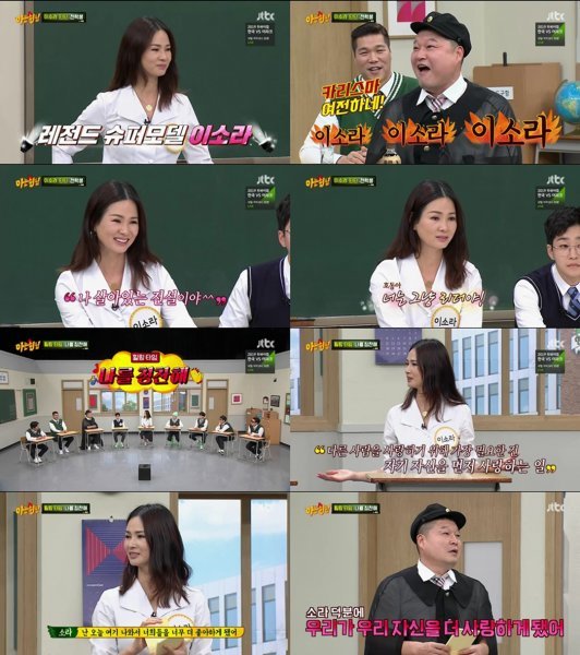 지난 16일 방송된 JTBC 예능 프로그램 ‘아는 형님’ 205회에서는 대한민국 최초의 슈퍼모델 이소라와 가수 딘딘이 전학생으로 등장한 가운데, 특유의 쾌활한 웃음과 거침없는 토크를 선보인 방송인 이소라의 맹활약이 시청자들의 눈길을 사로잡았다.