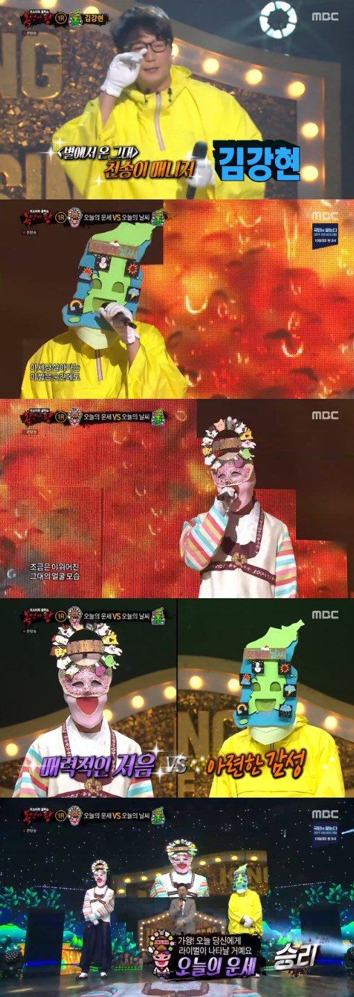 대결의 결과는 71표를 얻은 ‘오늘의 운세’의 승리였다. ‘오늘의 날씨’의 정체는 배우 김강현이었다. 김강현은 “내 목소리를 싫어하는 감독님들이 계셨다. 그 외모와 목소리로 왜 배우 생활을 하냐는 말도 많이 들었다”라고 눈물을 터트렸다. 이어 “제 목소리를 알아봐 주셔서 너무 감사드린다”라고 덧붙였다.
