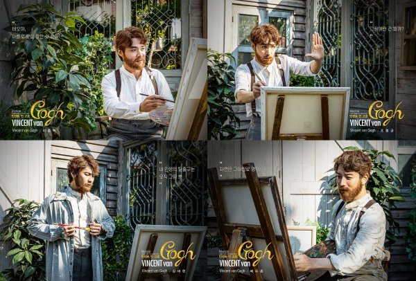 먼저 ‘빈센트 반 고흐’역에 이준혁, 조형균, 김대현, 배두훈은 마치 실제 ‘빈센트 반 고흐’가 그림을 그리고 있는 것 같은 완벽한 화가의 모습을 선보였으며 따뜻한 햇살 아래 그림을 향한 ‘고흐’의 열망과 희망을 엿볼 수 있는 표정이 눈길을 끌고 있다.