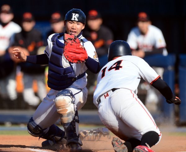 기장군이 주최하고 (주)오투에스앤엠과 부산광역시야구소프트볼협회, 스포츠동아가 주관하는 ‘2019 기장 국제야구 대축제‘가 19일 부산시 기장군 기장현대차드림볼파크에서 열렸다. 고등부 부산공고와 경주고 경기 6회초 1사 3루 부산공고 1루수 앞 땅볼 때 3루주자 김동현이 역전 득점에 성공하고 있다. 기장 | 김종원 기자 won@donga.com