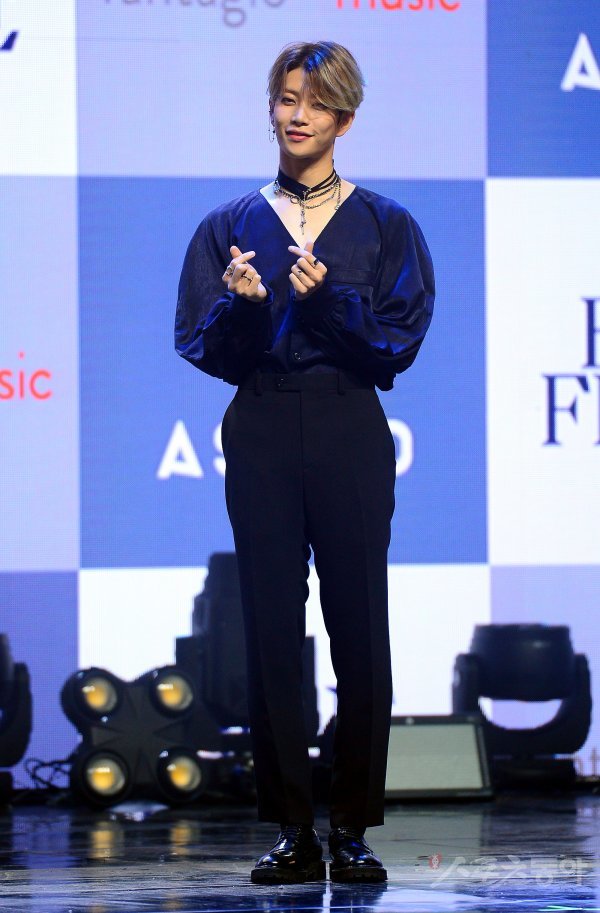 20일 오후 서울 광진구 YES24라이브홀에서 열린 아스트로(ASTRO)의 여섯 번째 미니앨범 ‘블루 플레임(BLUE FLAME)‘ 발매기념 쇼케이스에 참석한 MJ가 카메라를 향해 포즈를 취하고 있다.