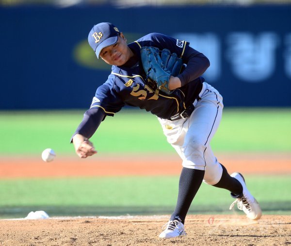 중등부 수원북중과 대천중 경기에 선발 등판한 수원북중 김민우가 역투하고 있다.