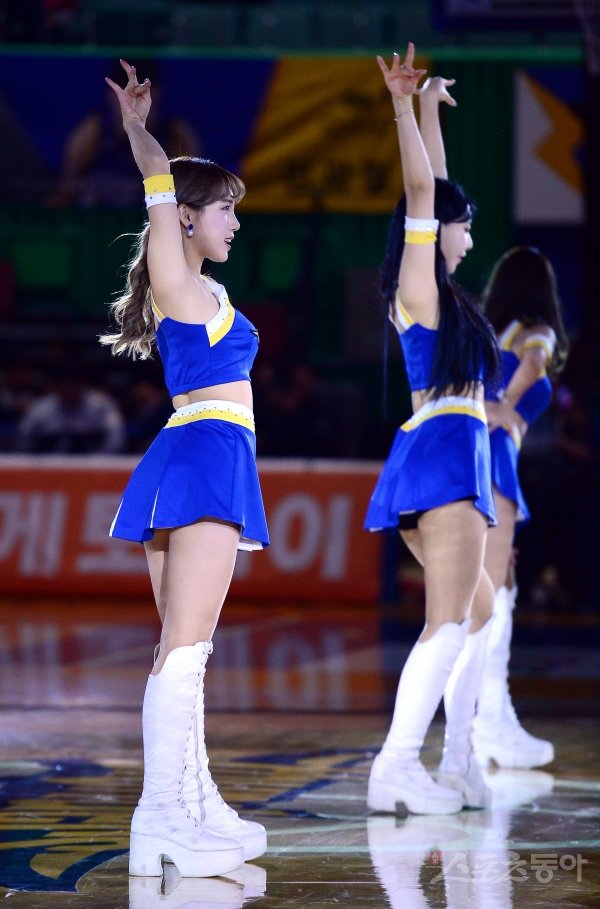 20일 서울 잠실실내체육관에서 열린 ‘2019-2020 현대모비스 프로농구’ 서울 삼성과 울산 모비스의 경기에서 삼성 치어리더가 화려한 공연을 선보이고 있다.