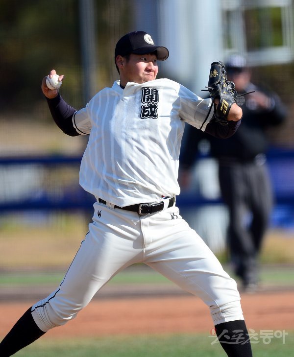 기장군이 주최하고 (주)오투에스앤엠과 부산광역시야구소프트볼협회, 스포츠동아가 주관하는 ‘2019 기장 국제야구 대축제’가 22일 부산시 기장군 기장현대차드림볼파크에서 열렸다. 고등부 개성고와 포항제철고 경기에서 개성고 최준혁이 역투하고 있다.