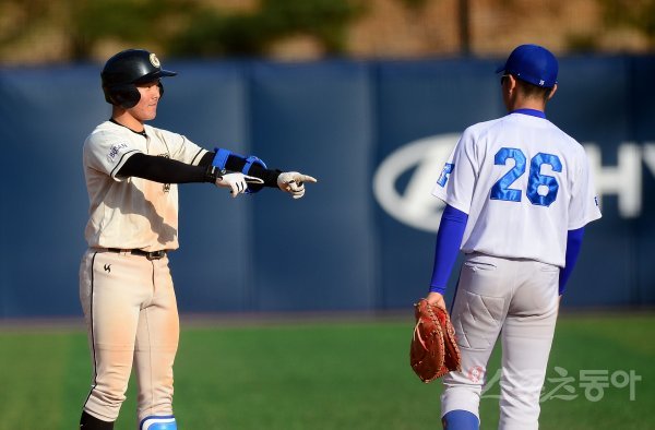 기장군이 주최하고 (주)오투에스앤엠과 부산광역시야구소프트볼협회, 스포츠동아가 주관하는 ‘2019 기장 국제야구 대축제’가 22일 부산시 기장군 기장현대차드림볼파크에서 열렸다. 고등부 개성고와 포항제철고 경기 9회초 2사 만루 개성고 천지환이 싹쓸이 3타점 중전 2루타를 치고 2루에서 기뻐하고 있다.
