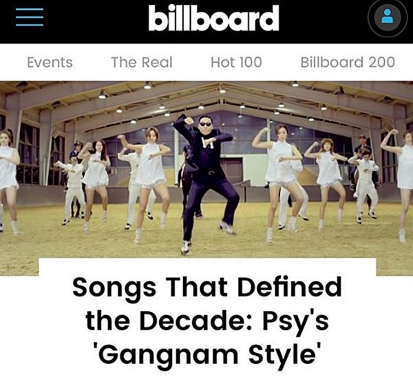 빌보드가 발표한 ‘10년을 정의한 음악 100곡’중에 싸이(PSY)의 ‘강남스타일’을 선정했다.