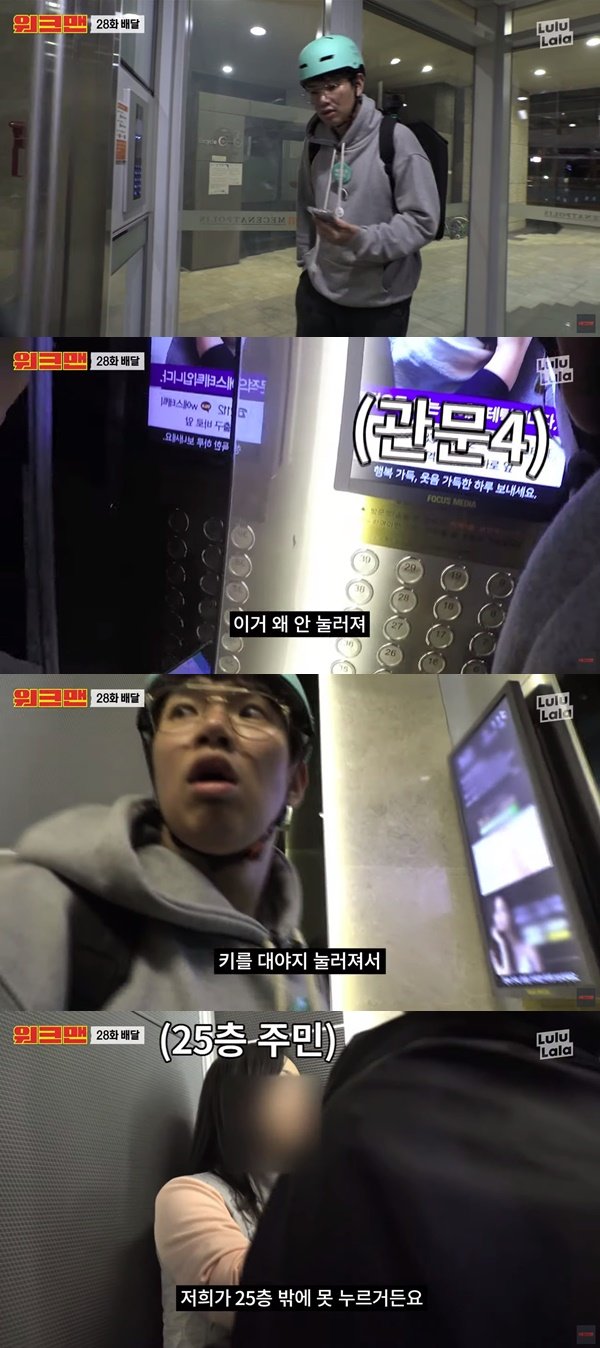 장성규는 이날 배달을 위해 엘리베이터에 올라탔고, 이후 배달층에 갈 수 없다는 사실을 알게 됐다. 때문에 그는 다른 층에 가는 주민의 도움을 받아 계단을 이용해 배달을 할 수 있었다.