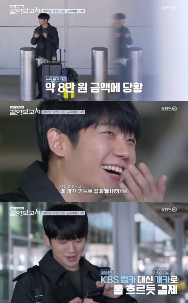 26일 밤 방송된 KBS2 ‘정해인의 걸어보고서’에서는 미국 뉴욕으로 향한 정해인의 준비 과정이 전파를 탔다.