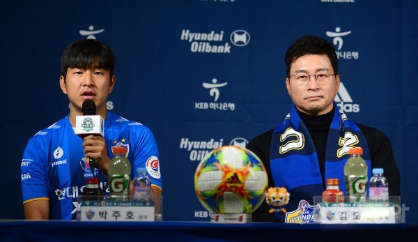 미디어데이에 참석한 울산 박주호가 취재진의 질문에 대답하고 있다.