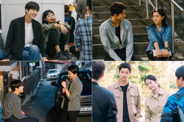 뿐만 아니라 문근영-기도훈의 꽁냥스러운 투샷이 시선을 사로잡는다. 극 중 유령을 향한 김우혁의 직진모드를 엿보게 하듯 문근영은 기도훈의 뜨거운 눈빛에 입꾹꾹 미소로 화답하고 있다. 또한 이야기 꽃을 피우며 얼굴 가득 함박 웃음을 터트리는 김선호-기도훈의 모습이 이목을 집중시킨다. 극 중 유령을 사이에 두고 멍뭉미와 티격태격을 오가는 극과 극 브로맨스를 폭발시키고 있는 두 사람은 함께 하는 것만으로도 훈훈함을 절로 풍기고 있다.