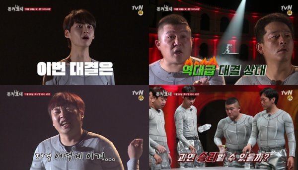 오늘(30일) 밤 10시 40분에 방송되는 tvN 미치거나 용감하거나 ‘돈키호테’(이하 ‘돈키호테’) 5회에서는 지난주에 이어 말도 안되는 '감각 대결'을 이어간다. 개와 후각대결, 시간감각을 이용한 1시간 측정 미션, 물병을 돌리면서 던져 세우는 '보틀 플립'까지, '꿈잣돈'을 향한 김준호, 조세호, 송진우, 이진호, 이진혁의 감각을 총동원한 무모한 도전이 펼쳐진다.