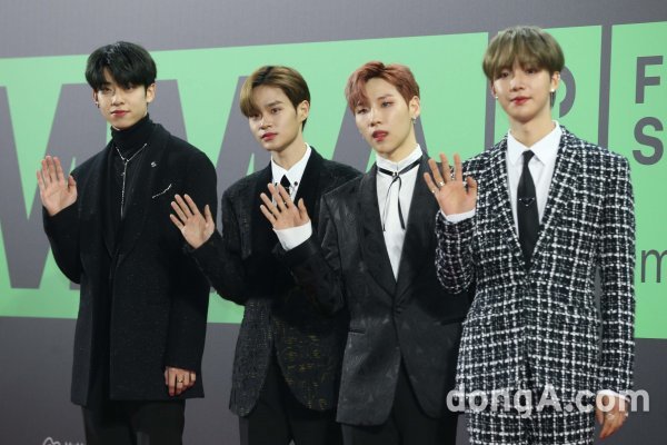 그룹 AB6IX가 30일 서울 고척스카이돔에서 열린 대중음악 시상식 \'MMA 2019(멜론뮤직어워드)\' 행사에 참석해 포토타임을 하고 있다.