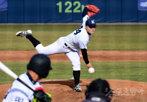 기장군이 주최하고 (주)오투에스앤엠과 부산광역시야구소프트볼협회, 스포츠동아가 주관하는 ‘2019 기장 국제야구 대축제’가 30일 부산시 기장군 기장현대차드림볼파크에서 열렸다. 대구고등학교와 경남고등학교의 고등부 야구 결승 경기에서 경남고 김창훈이 힘차게 볼을 던지고 있다.