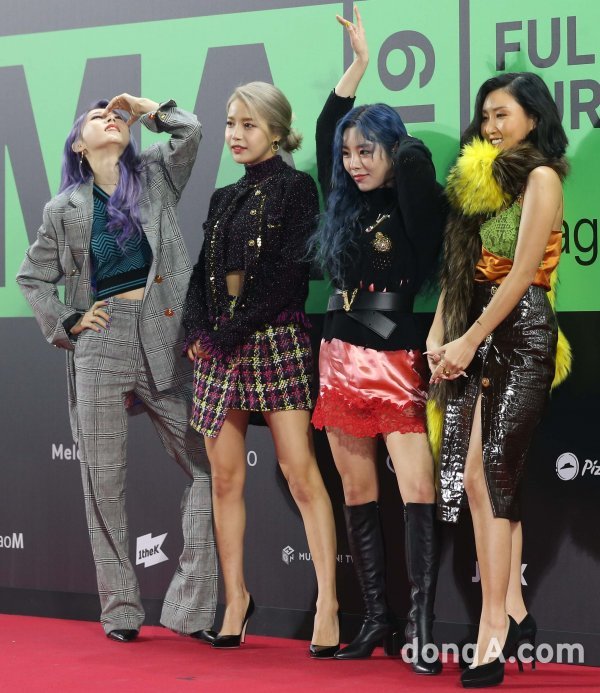 그룹 마마무가 30일 서울 고척스카이돔에서 열린 대중음악 시상식 \'MMA 2019(멜론뮤직어워드)\' 행사에 참석해 포토타임을 하고 있다.