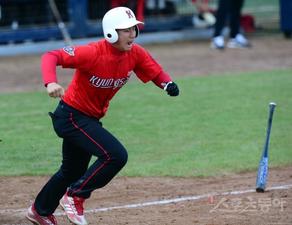 기장군이 주최하고 (주)오투에스앤엠과 부산광역시야구소프트볼협회, 스포츠동아가 주관하는 ‘2019 기장 국제야구 대축제’가 30일 부산시 기장군 기장현대차드림볼파크에서 열렸다. 대구 경상중학교와 부산 대신중학교의 중학부 야구 결승경기에서 연장 8회말 1사 2, 3루에서 경상중 이찬주가 동점 적시타를 날리고 있다.
