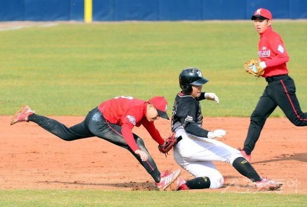 기장군이 주최하고 (주)오투에스앤엠과 부산광역시야구소프트볼협회, 스포츠동아가 주관하는 ‘2019 기장 국제야구 대축제’가 30일 부산시 기장군 기장현대차드림볼파크에서 열렸다. 대구 경상중학교와 부산 대신중학교의 중학부 야구 결승경기에서 연장 8회초 1사 2루에서 대신중 김태균의 내야 땅볼 때 2루 주자 고영웅이 경상중 원상윤에게 태그 아웃되고 있다.