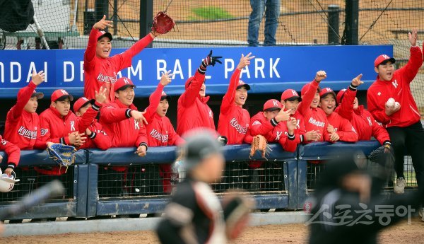 기장군이 주최하고 (주)오투에스앤엠과 부산광역시야구소프트볼협회, 스포츠동아가 주관하는 ‘2019 기장 국제야구 대축제’가 30일 부산시 기장군 기장현대차드림볼파크에서 열렸다. 대구 경상중학교와 부산 대신중학교의 중학부 야구 결승경기에서 6회말 2사에서 경상중이 동점에 성공하자 더그아웃의 동료들이 환호하고 있다.