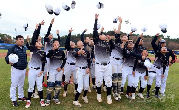 기장군이 주최하고 (주)오투에스앤엠과 부산광역시야구소프트볼협회, 스포츠동아가 주관하는 ‘2019 기장 국제야구 대축제’가 30일 부산시 기장군 기장현대차드림볼파크에서 열렸다. 대구 경상중학교와 부산 대신중학교의 중학부 야구 결승경기에서 우승을 차지한 대신중 선수들이 기념촬영을 하고 있다.
