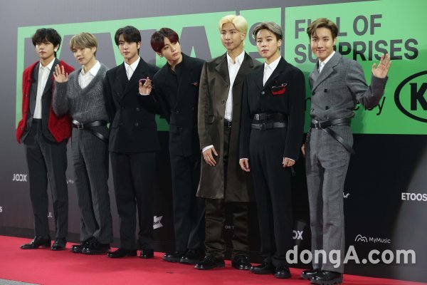 그룹 방탄소년단이 30일 서울 고척스카이돔에서 열린 대중음악 시상식 \'MMA 2019(멜론뮤직어워드)\' 행사에 참석하고 있다.