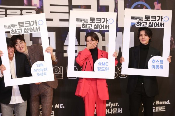 2일 오후 서울 양천구 목동 SBS방송센터에서 열린 예능 프로그램 \'이동욱은 토크가 하고 싶어서\' 제작발표회에서 출연진이 포토타임을 하고 있다.