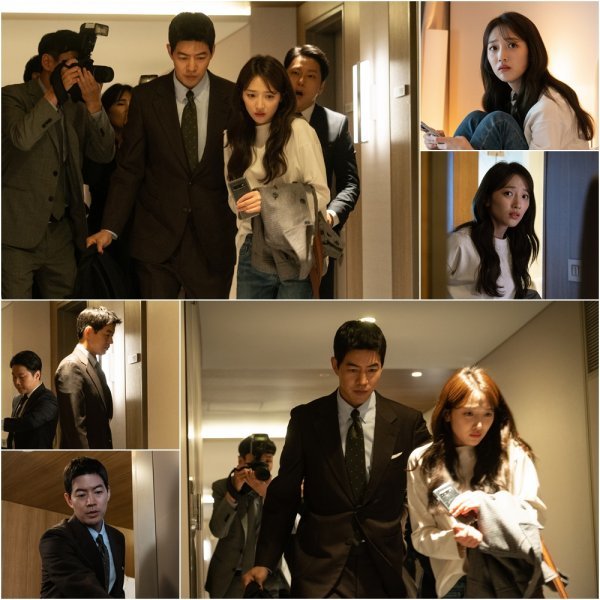 이와 관련 이상윤-표예진이 기자들을 뒤로한 채 호텔 방을 나서는 장면으로 이목을 집중시키고 있다. 극중 박성준이 은신하고 있던 온유리를 데리고 호텔을 탈출하는 장면. 박성준은 온유리 방문 앞에서 포커페이스를 유지하고 서 있다, 문이 열리자 온유리를 감싸고 차분하게 발걸음을 옮긴다. 반면 온유리는 밖에 서 있는 기자들을 보고 놀라는 기색을 감추지 못하는 것. 두 사람의 모습을 담아내는 기자들의 카메라 셔터가 멈추지 않는 가운데, 두 사람에게 무슨 일이 일어난 것인지 ‘프라이빗 스캔들’ 전개에 궁금증을 폭발시키고 있다.
